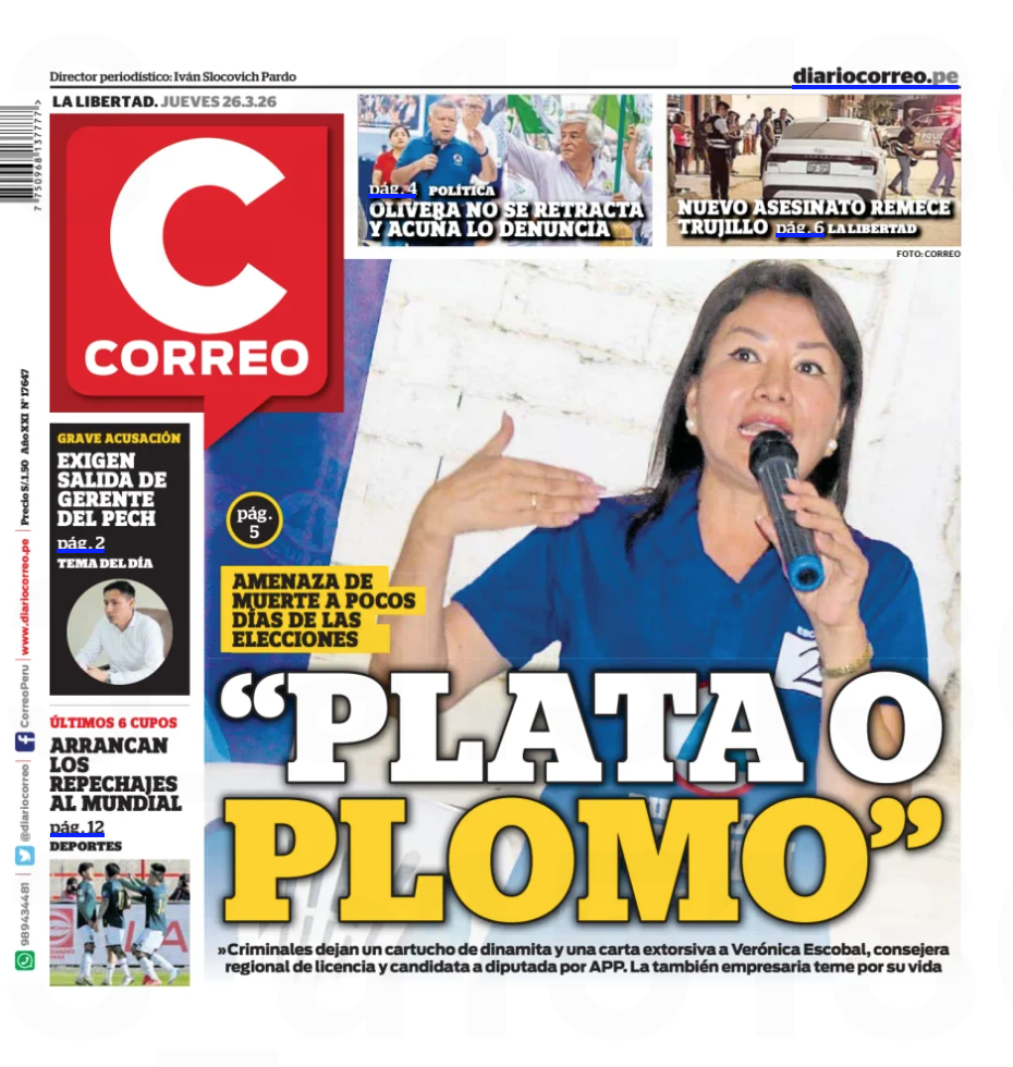 Verónica Escobal Ordoñez, consejera regional que solicitó licencia al cargo para postular a diputada por Alianza para el Progreso (APP), vuelve a estar en la mira de organizaciones criminales. Delincuentes le dejaron un cartucho de dinamita y una carta extorsiva en uno de sus inmuebles, en donde se realizan trabajos de construcción.